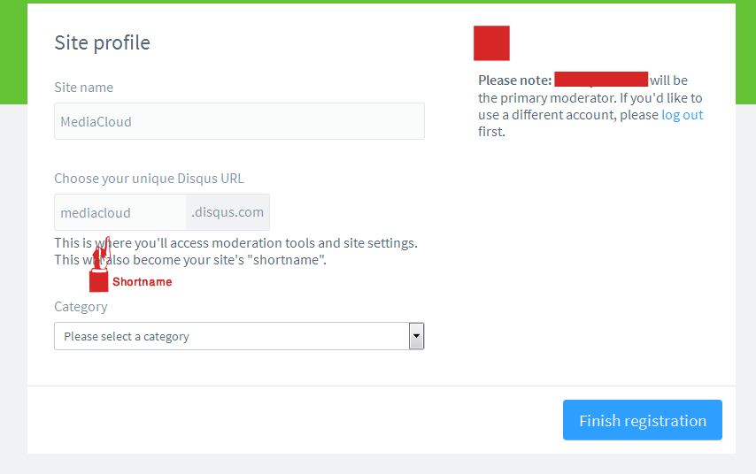 Add your details and then remember the Shortname to add it in the Comments Setting