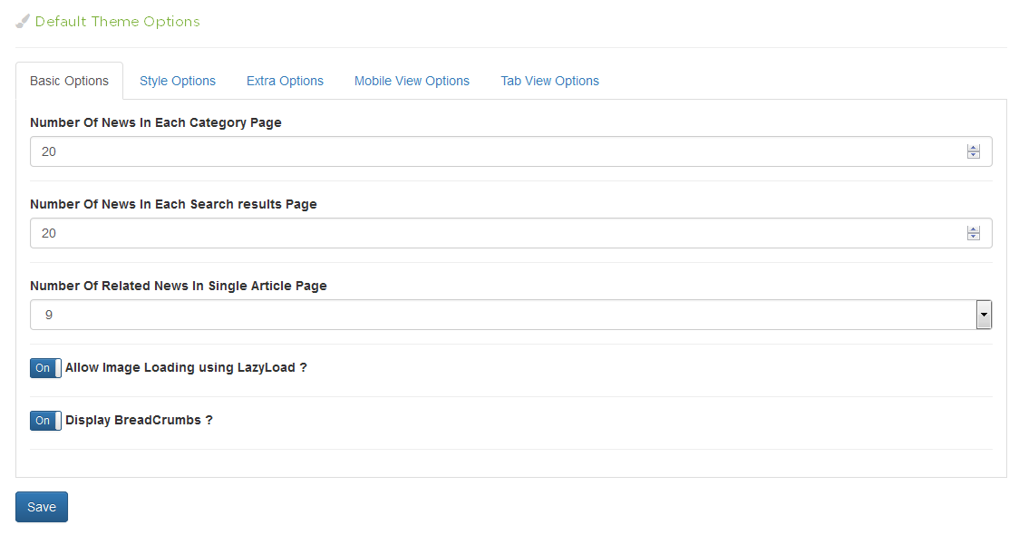 | Display BreadCrumbs ? | BreadCrumbs are navigation links which improve site SEO. |