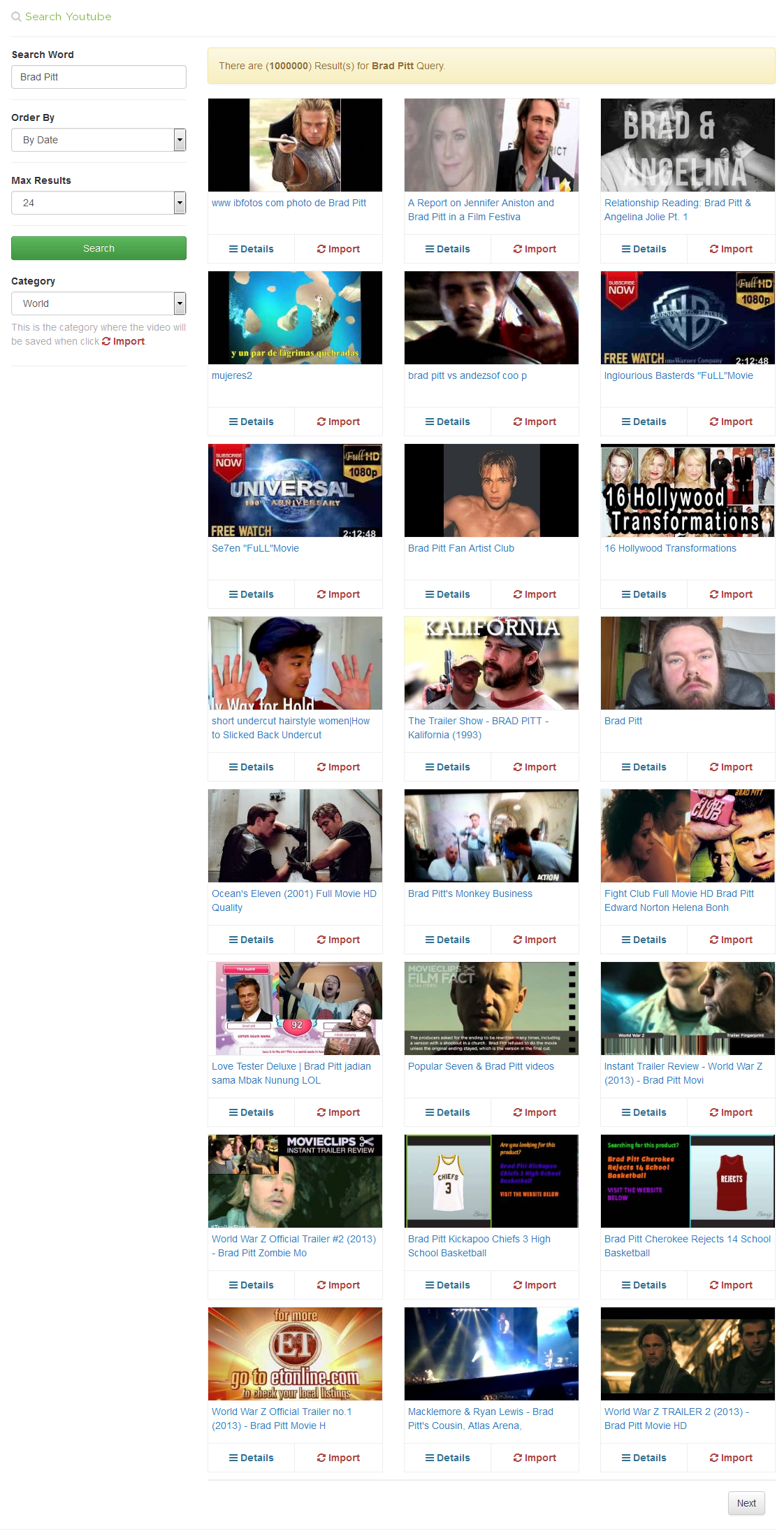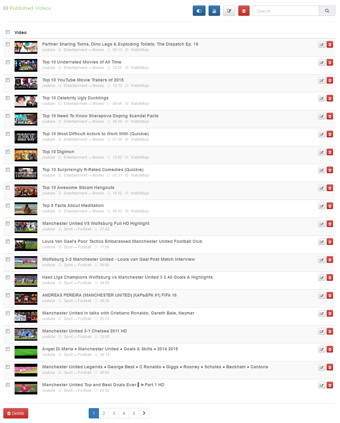You Can manage (edit and delete) Imported Videos and Add New Videos From Youtube and DailyMotion Search Page.