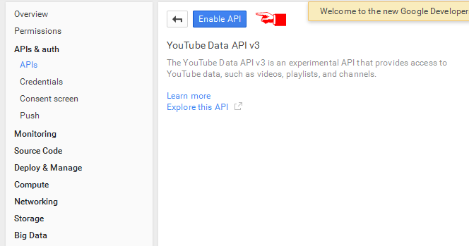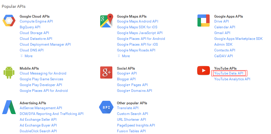 click on YouTube Data Api